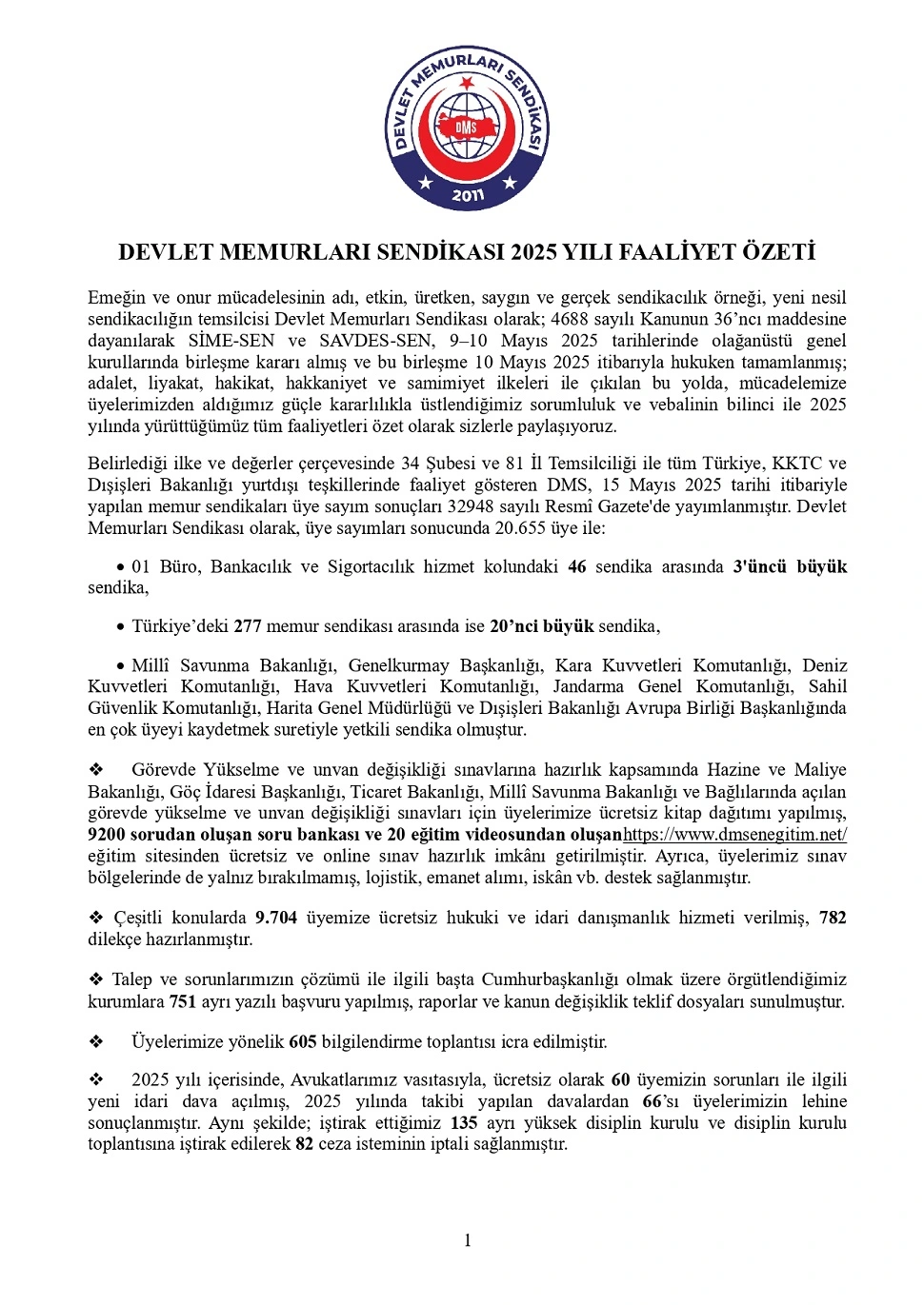 2025 YILI FAALİYET RAPORU ÖZET - (SAVDES-SEN - SİME-SEN)