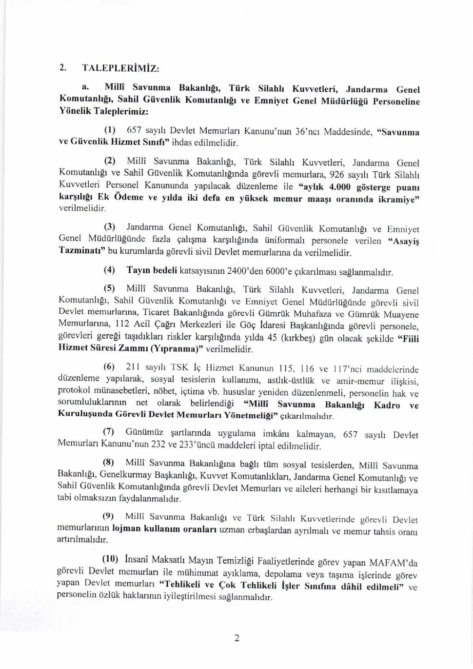 TOPLU SÖZLEŞME TALEPLERİMİZ
