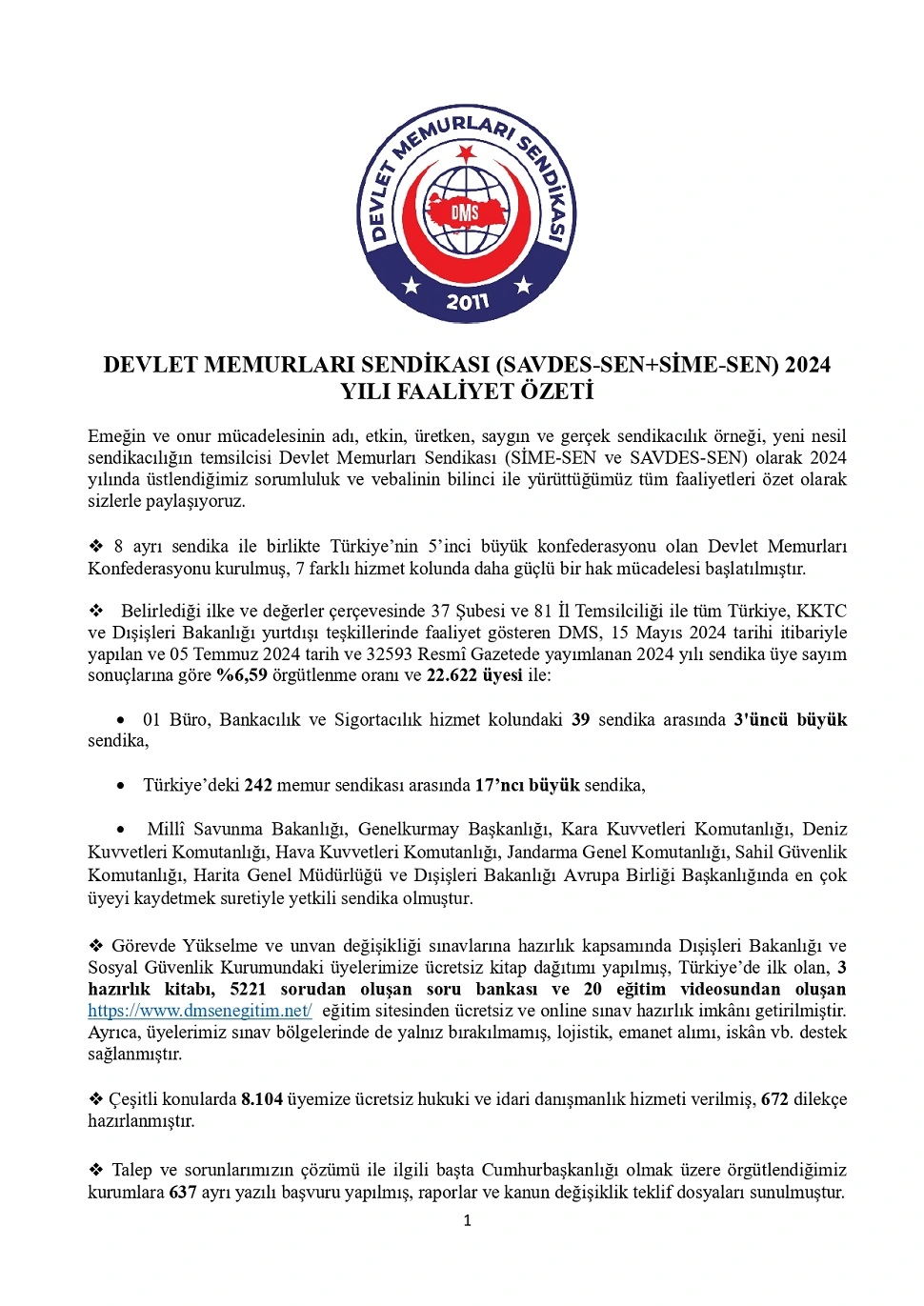 2024 -2025 YILI FAALİYET RAPORU ÖZET - (SAVDES-SEN - SİME-SEN)